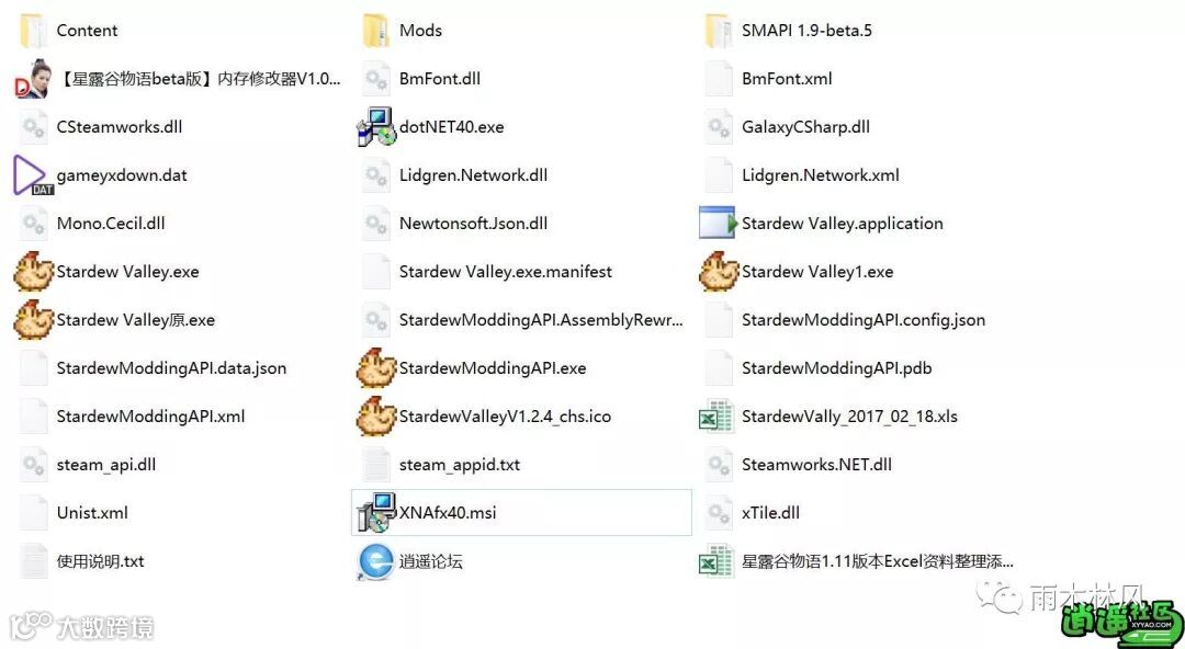 游戏版本为1.2.4,安装完毕就可以玩,运行StardewModdingAPI.exe可实现mod和番茄星露谷修改器共存。运行Stardew Valley.exe为番茄星露谷修改器2.2版本,Stardew Valley1.exe为番茄星露谷修改器2.7版本,Stardew Valley原.exe为不作弊原版。