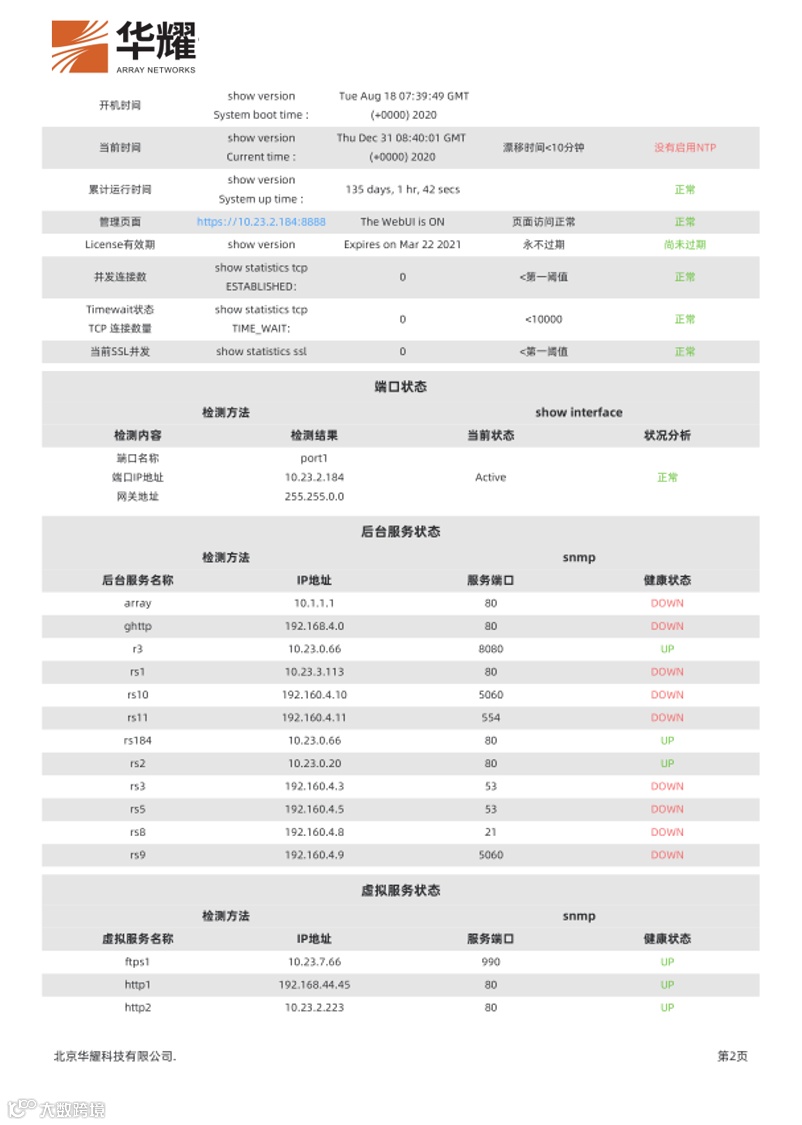 ● 支持生成负载均衡设备一键巡检报告