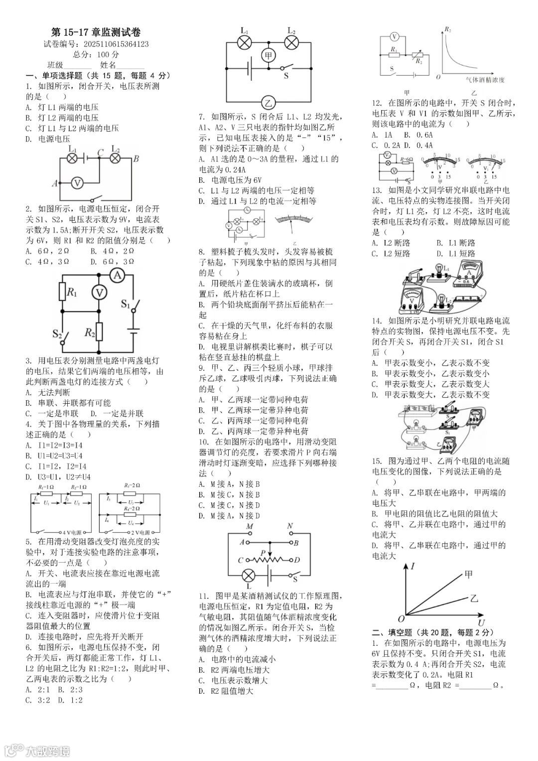 本次整理的 52 套欧姆定律习题,精选了电学考试的核心模型:既有基础的公式应用类,也有综合的电路分析类,更有易错的陷阱题型。但我们不建议你盲目刷完 52 套,而是聚焦其中 3 套典型题(涵盖串联、并联、动态电路三大核心模型),深入拆解电路结构、推导解题步骤、总结通用规律。当你真正吃透这 3 套题的模型逻辑,再遇到同类考题时,自然能快速找到解题突破口,实现触类旁通。