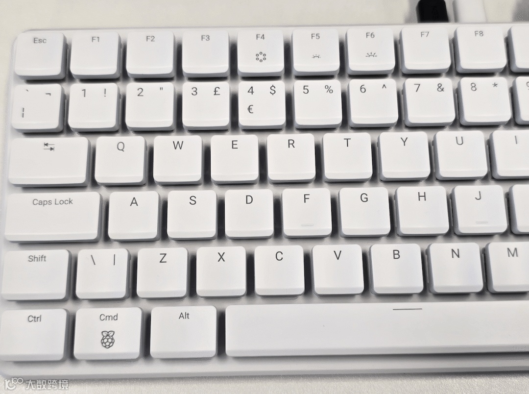 树莓派 500+ 最抢眼的无疑是键盘。它的外观布局和 Keychron K2 很相似。键帽下方是 Gateron Blue KS-33 低位机械轴,作为“青轴爱好者”,我感觉还不错,属于是一块可以日常使用的键盘。