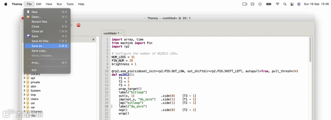 注意一定要将文件命名为 main.py,因为任何使用这个名称的文件都将在每次启动 Pico 时自动运行。