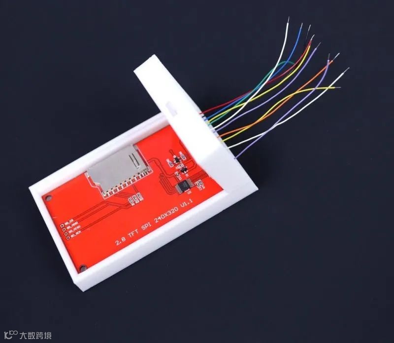 2、将显示器与 Wemos 板线接好后再安装到外壳中。