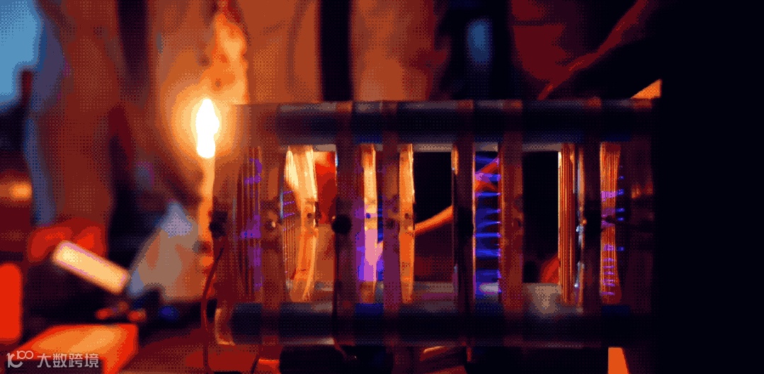 施加电压之后,它产生电晕放电,果然吹灭了蜡烛。