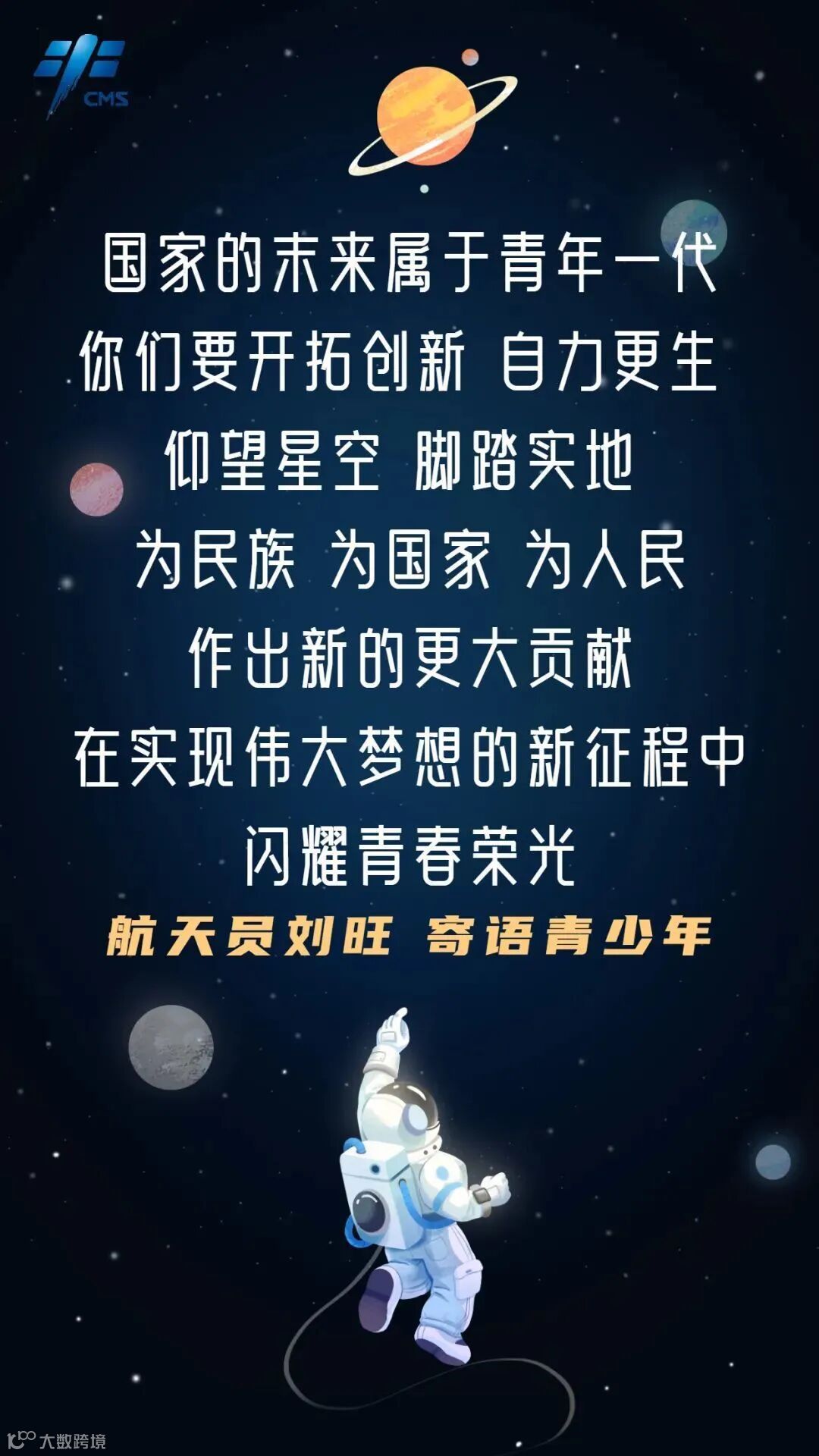 导读:今天是国际儿童节航天员寄语广大青少年向星辰大海出发年少有为的你准备好实现心中梦想了吗?愿你心怀报国理想勇敢追