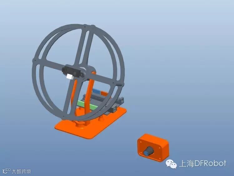 机械部分 搭建好了电路部分,现在就需要一个载体来承载这个硬件电路,首先需要设计如何固定好电风扇电机,如下图所示: