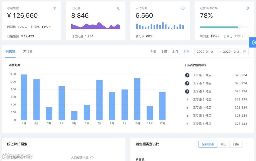 面向中层的业务看板,注重过程和组成,多使用增长曲线等形式来体现数据分布、规律和变化。