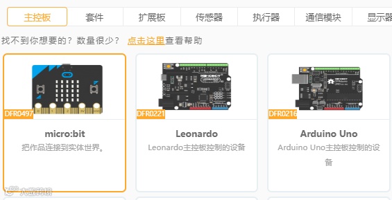 第一步:添加microbit控制器 鼠标点击拓展按钮,切换“主控板”页面,添加microbit。