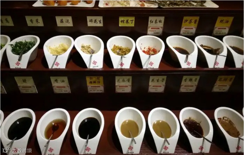 “欢迎品尝重庆火锅!请把油碟放在托盘上。”