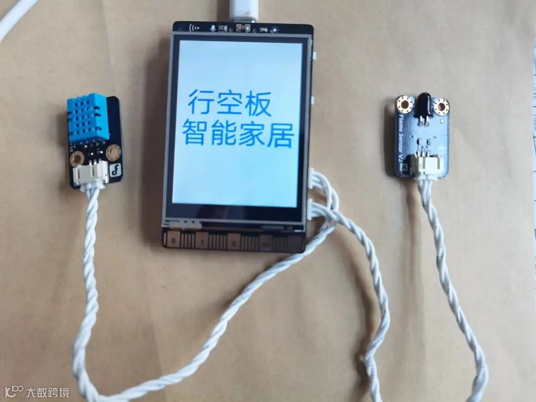 各组分别将温湿度传感器和火焰传感器连接在行空板21、22引脚上,声音和光线使用行空板内置传感器。