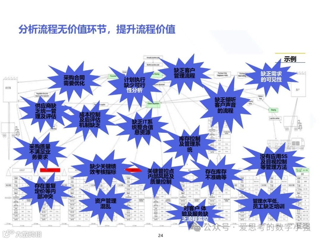 增值链分析:识别核心价值环节,如零售企业将“客户需求分析→商品选品→供应链优化” 作为增值核心,剔除冗余步骤。