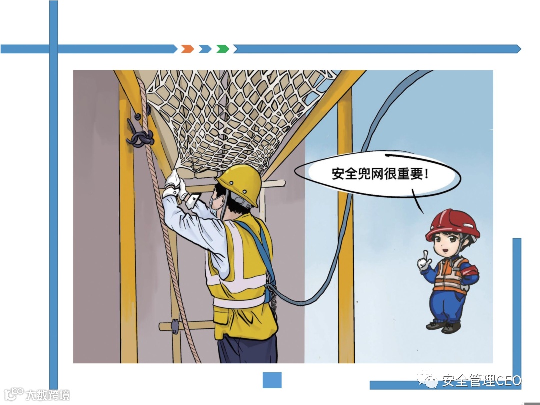 13.钢结构或屋面施工,利用钢梁作为水平通道时,未在钢梁一侧设置连续的钢丝绳水平生命绳,或首次屋面板施工位置未在下方设置安全平网。