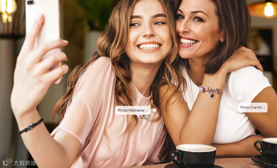 在独立站内,soufeel放置母女二人佩戴定制饰品开心拍合照的图片,图片上母亲与女儿亲密互动十分融洽有爱,从画面上渲染节日氛围展示产品,引起消费者情感共鸣,从而促进用户下单购买。