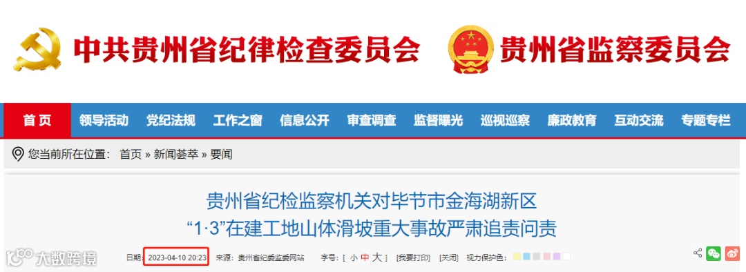 4月10日,贵州省纪委监委发布《贵州省纪检监察机关对毕节市金海湖新区“1·3”在建工地山体滑坡重大事故严肃追责问责》(下文附完整原文),对毕节市住建局等11家责任单位和27名相关责任人员进行追责问责。其中,党纪政务处分22人,诫勉1人、责令书面检查4人,移送司法机关审查起诉3人。