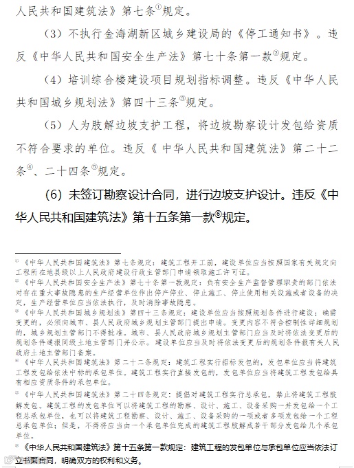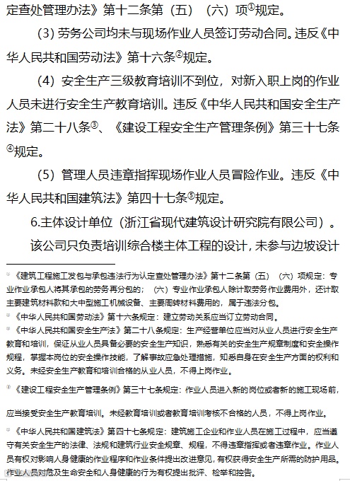 4.边坡勘察设计单位,对事故负有责任。建议由省住房城乡建设厅对其处以吊销工程勘察资质证书的处罚。