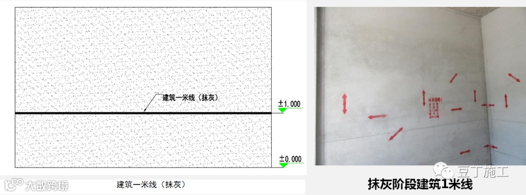 ①建筑1米线:抹灰完成后在墙面设置建筑一米线,如下图(达到实测条件3天内完成)
