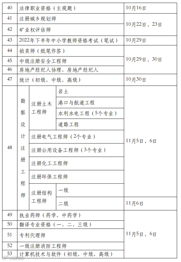 为做好专业技术人员职业资格考试规划和管理工作,便于广大专业技术人员参加职业资格考试,经商有关部门同意,现就2022年度专业技术人员职业资格考试计划及有关事项通知如下: