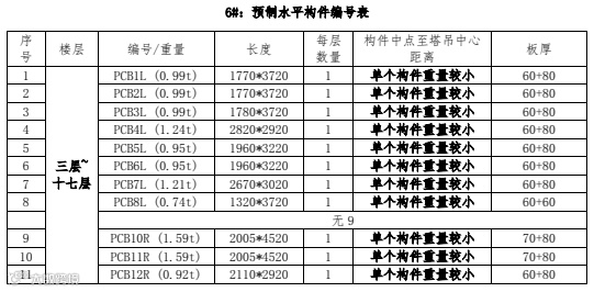 以首批次 6 栋楼举例,预制混凝土(PC)构件类型统计汇总表及构件示意图如下:
