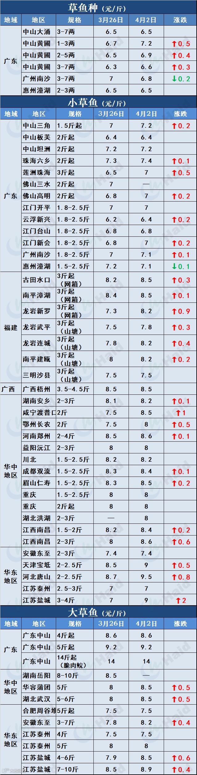 全国鱼价行情 每周五更新