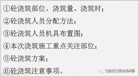 混凝土施工工艺:甭管安装→周边成品保护→垃圾清理→预留孔洞检查→不同标高楼板交接处吊模→砼施工前检测→模板喷水湿润→放掉浇筑前润管砂浆→浇筑、振捣→敲打模板并观测模板变化→砼初平→砼抄平→污染部位清理→砼细平→砼压光→养护→拆模→打磨修补→强度测试