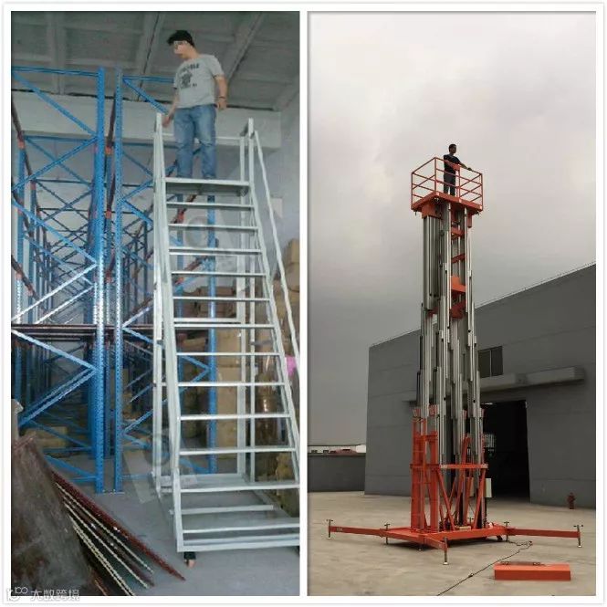 应选用有防护栏和操作平台的登高梯,登高平台梯不仅稳定性较好,还能提供作业、存放工具的空间,有效降低了事故风险,还大大提高工作效率。在户外进行悬挂招牌、灯具检修、清洗外墙、拆装空调等作业时,应选用自动升降平台。