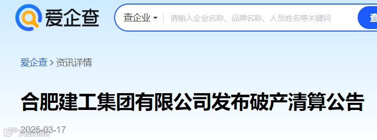 近日,爱企查消息:合肥建工集团有限公司正式宣布进入破产清算程序。同时,另有网友在某吧爆料合肥建工集团破产重整的消息,相关公告显示法院已裁定受理其破产重整申请一案。