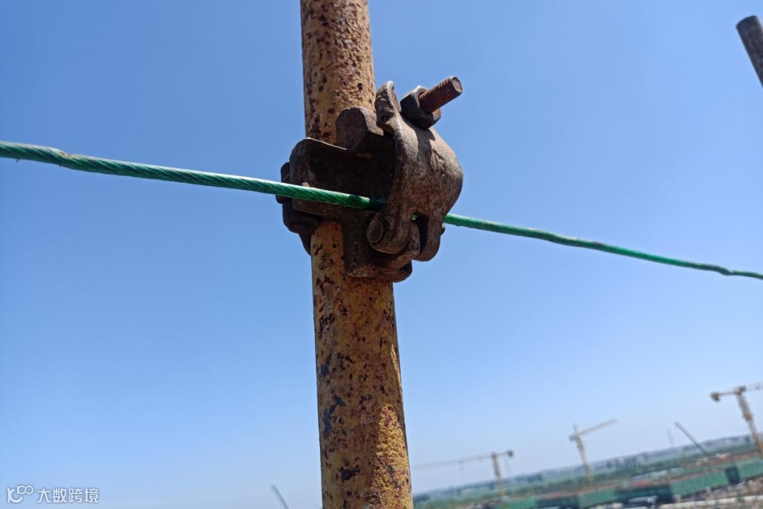 在建筑物顶部利用结构物等设置锦纶安全绳,安全绳无松散、断股、打结现象。