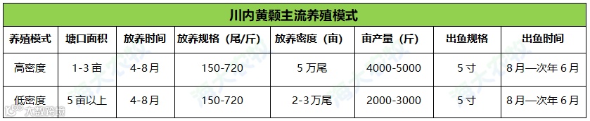 受区域水源和土地资源影响,四川黄颡养殖呈现“小而密,大而稀”的特点,养殖模式以投放规格苗或育养分离为主。模式差异主要表现在养殖密度上,主流投放密度在2-5万尾不等,投放春仔和秋仔季节性明显,越冬与否受行情影响较大。