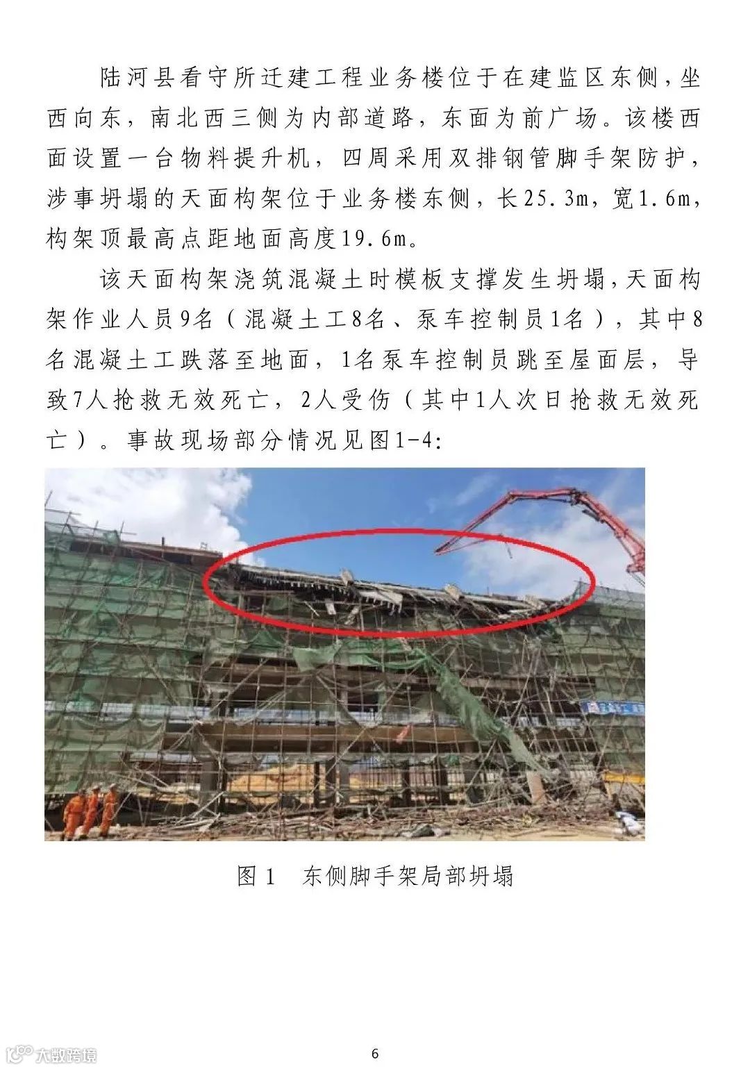 2020年10月8日10时50分,陆河县看守所迁建工程业务楼的天面构架模板发生坍塌事故,造成8人死亡,1人受伤,事故直接经济损失共约1163万元。