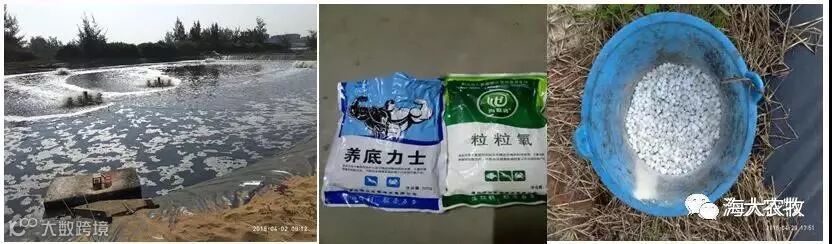 庞站长通过上面谈到的泡菌+泡肥保证菌相和藻相稳定,维持池塘生态系统原有净化能力,同时在对虾进入100头/斤规格以后,开始5天改一次底,进入50头以后不仅坚持3-4天改一次底,每天晚上还全池撒粒粒氧。