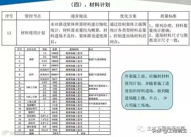 4.提前形成了脚手架架体材料清单,各类材料有计划的提前准备,