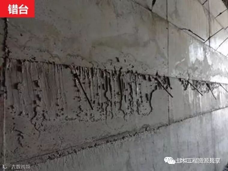 错台是指混凝土分缝处上下层错开一定的距离形成台阶。 ![]()