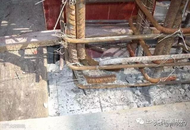 ⑤ 浇筑砼时两侧的板筋要整理复位,清理干净钢筋上的污染物,然后逐条焊接,支顶好上下层钢筋位置。
