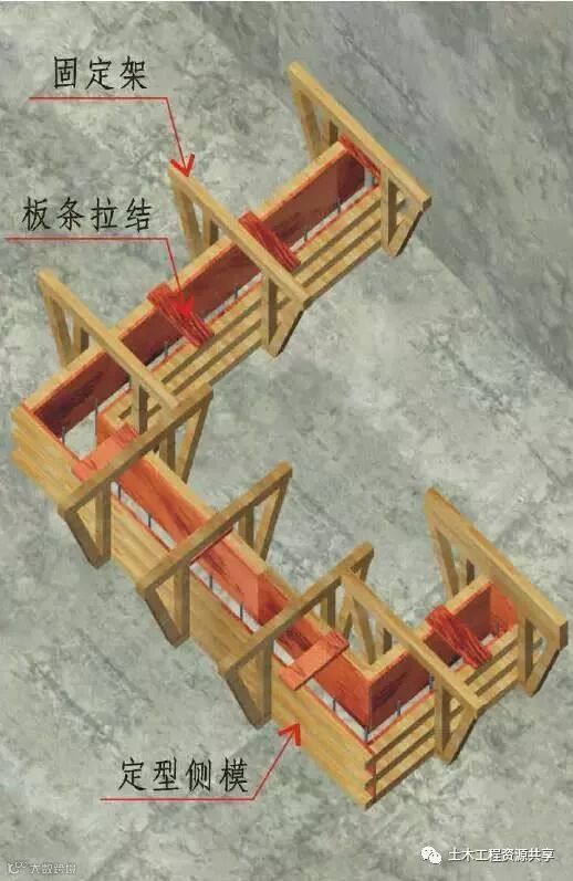 2、后浇带或施工缝梁板模采用锯齿形散模拼装,用钢筋与板筋或梁筋焊接固定。对于厚度较大估计难以拆除模板的地下室部位可采用钢筋网和多层钢丝网组合模,但上口100-150mm应采用锯齿形散模拼装,确保上口通顺平直。