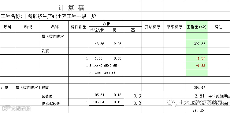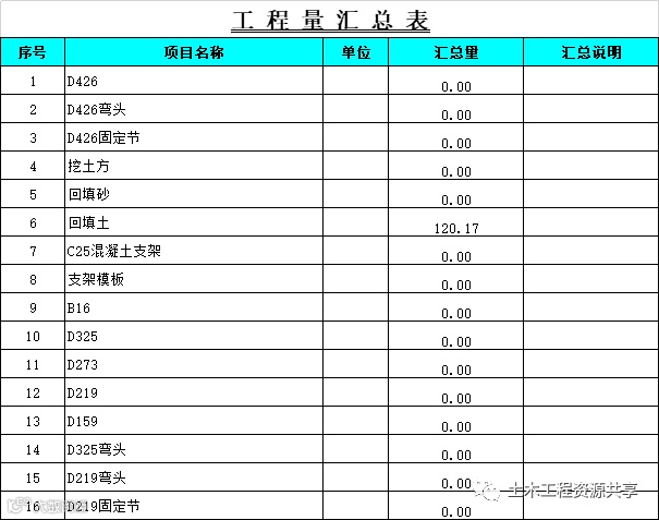 工程量计算书自动计算汇总表