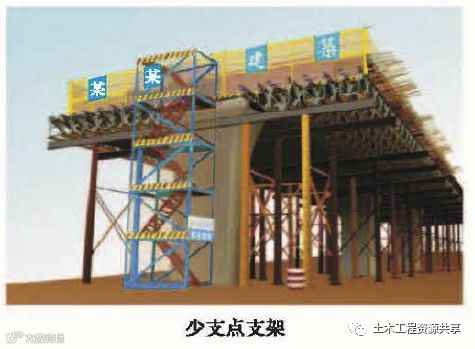 2. 少支点满堂支架通道两端须设限商、限宽、限速设施及标志。通道内应设置照明设施,照明方向顺车辆行驶方向照射。通道内钢立柱基础应设有防撞墩,并张贴反光警示标志。通道顶部应设有水平硬质防护。对于长度大于100m的支架通道,应配备消防设施。