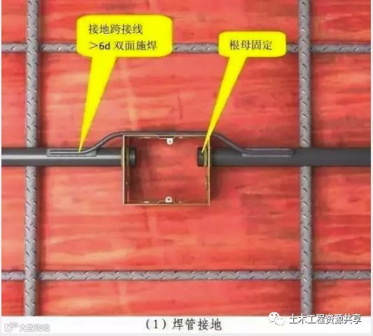 3、质量要求:接地装置按照设计图尺寸位置要求,将底板内两条结构主筋焊接连通,并与有关钢筋焊接(如桩基钢筋)。焊口不得有夹渣、咬肉、裂纹、虚焊、气孔等缺陷。点这免费下载施工技术资料