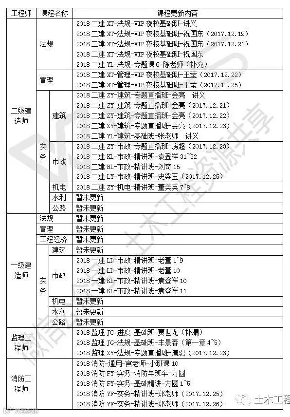 大家好!二级建造师、一级建造师等工程师培训课程今日更新了!!!!