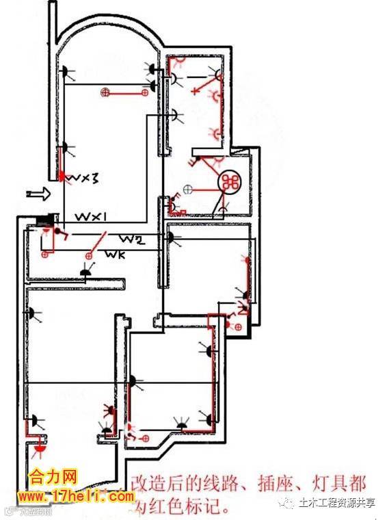(2)绘制各居室电路分布图,并以各种灯具、开关、插座和配电盘定出坐标及高度,以确定路线的走向和分支汇合。电线最好选用不同颜色,以便识别不同的回路。