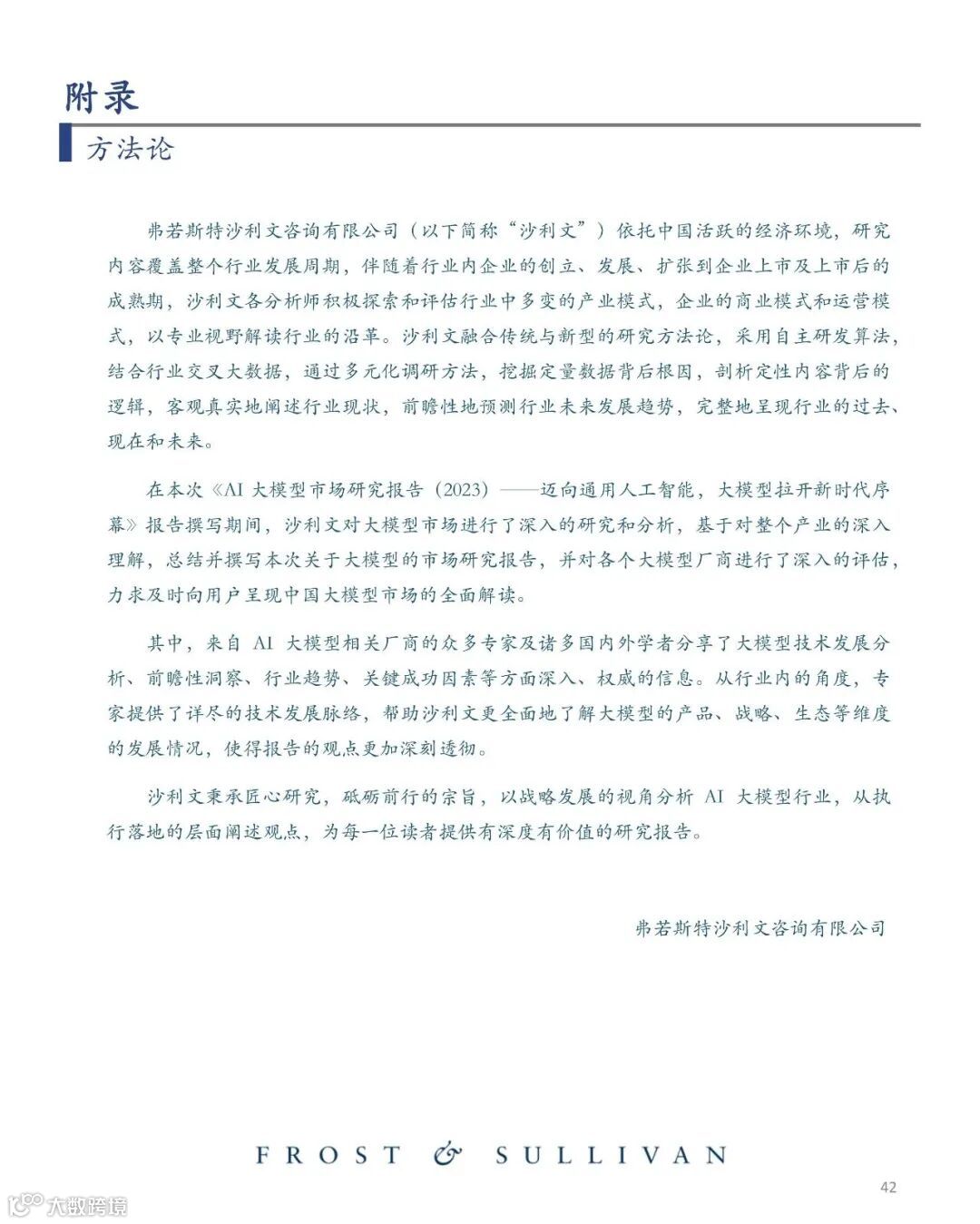 近日,弗若斯特沙利文(Frost & Sullivan,简称“沙利文”)发布《AI 大模型市场研究报告(2023)——迈向通用人工智能,大模型拉开新时代序幕》。