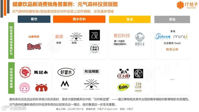 5.包括传统的食品公司(如亲亲食品)和酒水饮料新消费独角兽公司都在对外投资布局,而且是跨品类式的多元化投资。