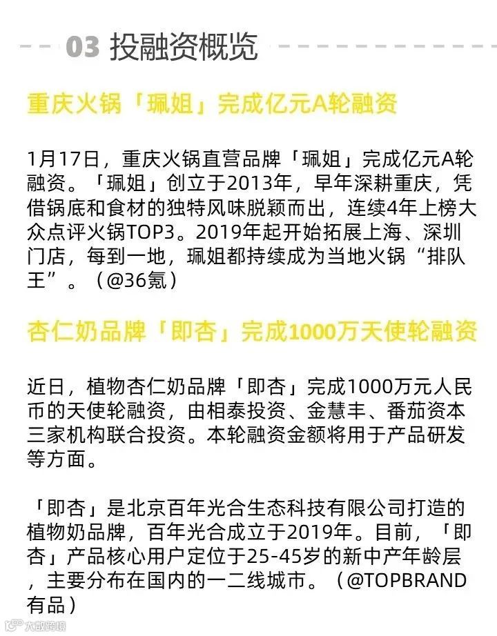 以下是 1 月 17 日至 1 月 23 日,IT 桔子新消费周报全文: