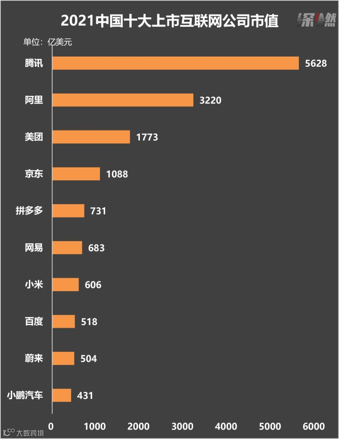 12月31日给2021年的资本市场画上了句号。中国前十大上市互联网公司,名单相比2020年并无太大变化,但市值加起来蒸发了近8000亿美金。