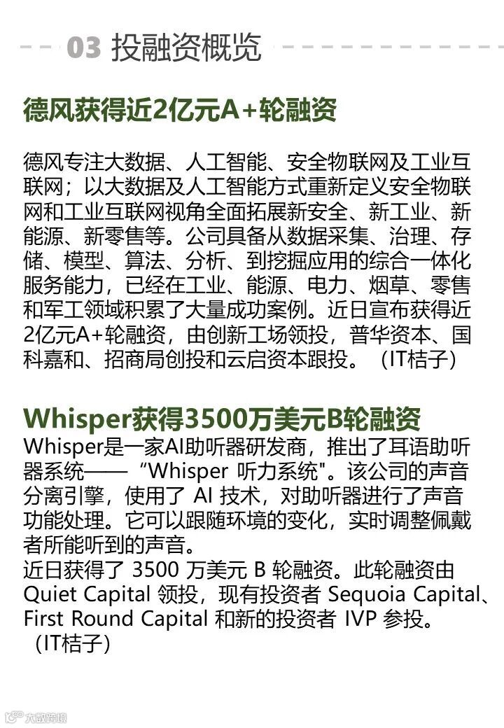 IT 桔子顺应行业发展热潮推出了人工智能行业周报栏目。周报将从国家政策举措、投融资动向、业内大公司动态、行业热点事件等维度解读人工智能行业最新变化,为人工智能创业投资提供参考。