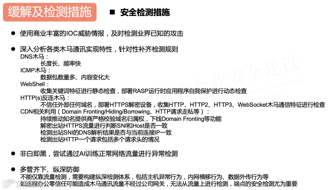 仅依靠流量检测肯定是不行的,还需要构建纵深检测体系,包括主机异常行为,内网横移行为、数据外传行为等,端点安全检测是很重要的。