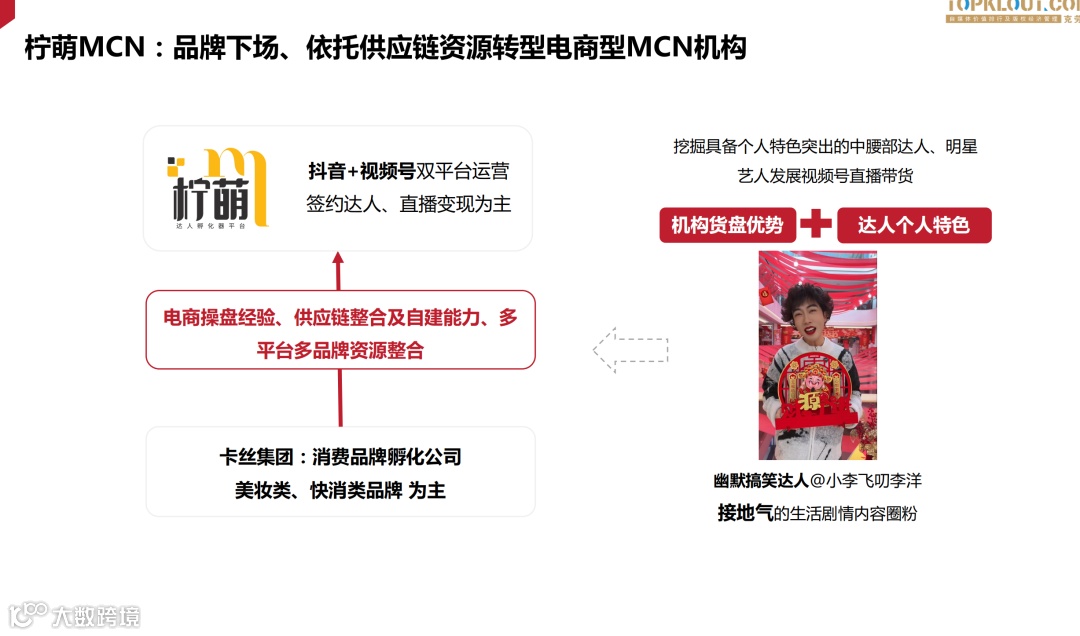 与此同时,手中握有供应链资源的各方纷纷放宽眼光,开始将MCN达人业务作为新目标,以单场合作、自孵红人品牌、签约红人等形式展开业务,并取得一定成果。