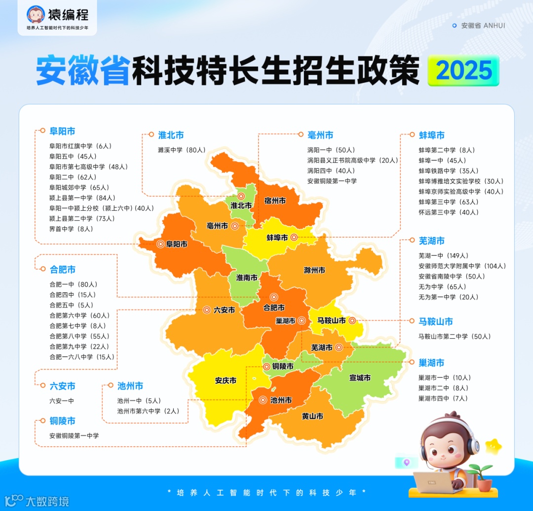 科技类,合肥一中滨湖校区30人、合肥一中瑶海校区20人、合肥一中淝河校区20人、合肥一中长江路校区10人。
