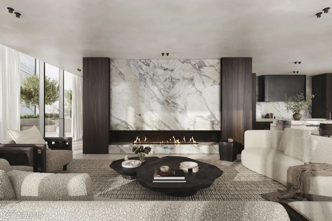 进入室内,就有令人叹为观止的多层空间设计,提供 了310㎡奢阔室内空间,外加 102㎡景观露台,完美融合了精致的室内生活与宁静的露天会客体验。