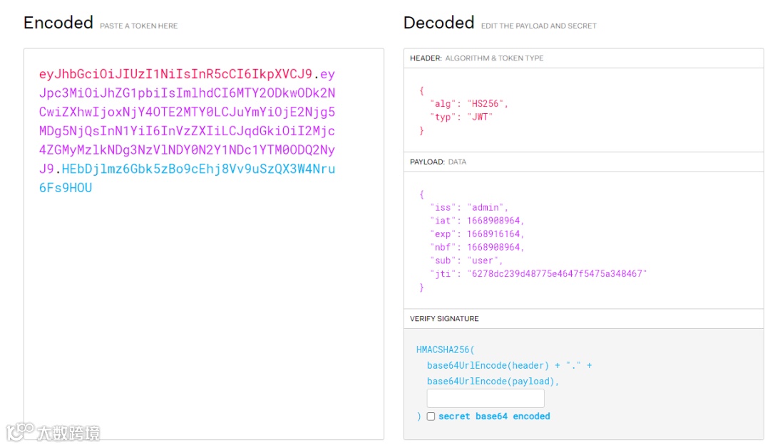 //假设这里是HS256算法,如果是其他算法的话开头设置为其他算法即可