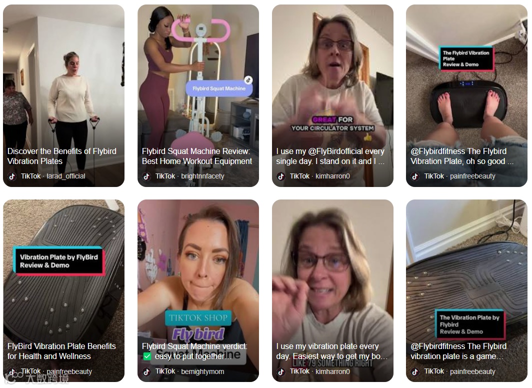 在北美家庭健身渗透率达38%的背景下,Flybird通过TikTok实现爆发式增长。2024年黑五大促期间,其自营直播间单日销售额突破5万美元,3个直播间跻身TikTok类目榜单TOP10,单日振动板销量高达3.9万台。
