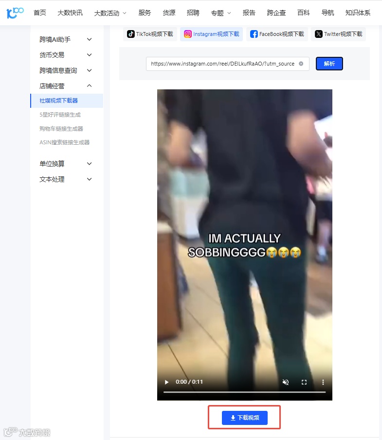 3.进入大数网站——【工具箱】——【社交媒体视频下载器】
